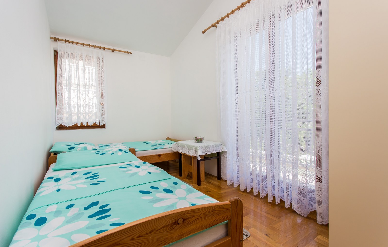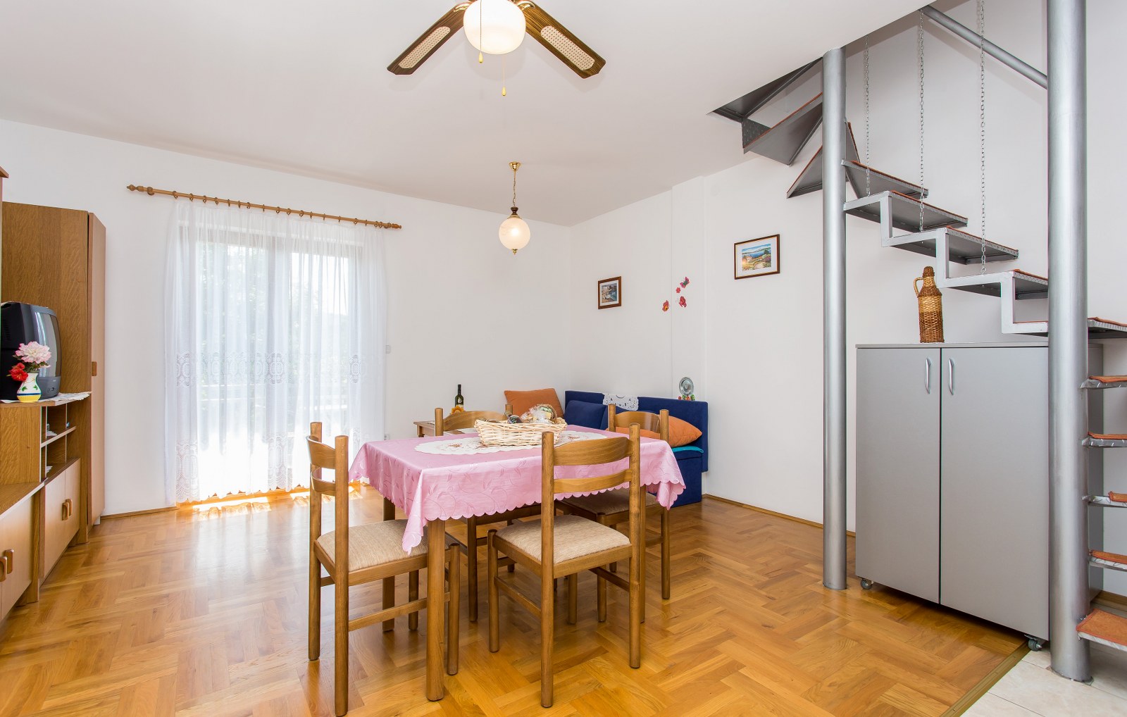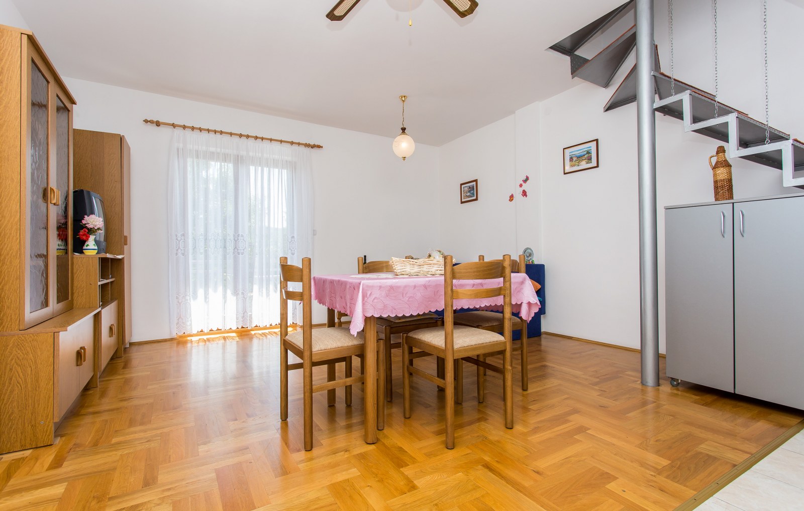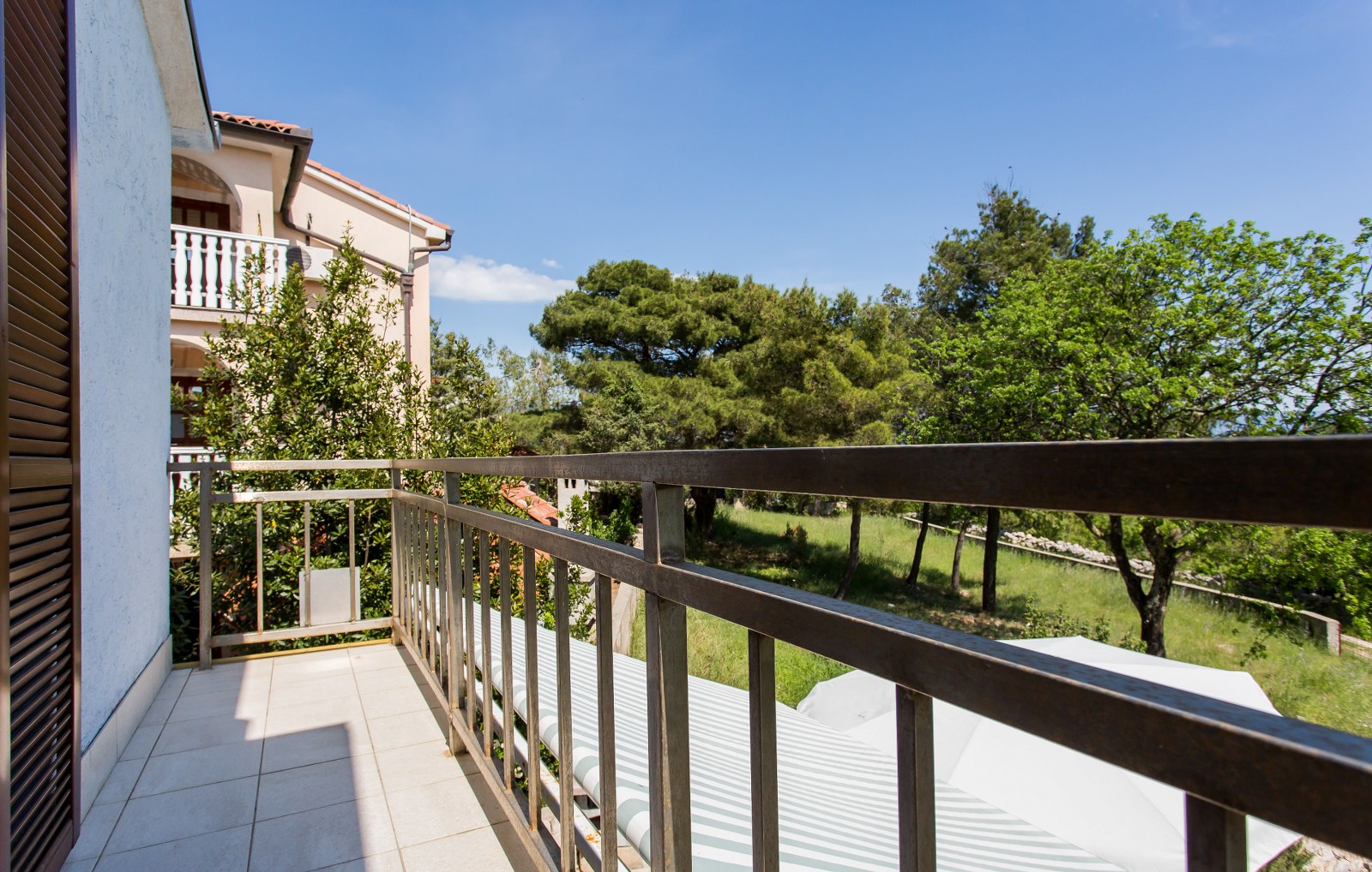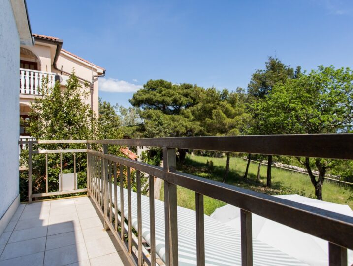 Apartman za odmor pogodan je za 4 do 5 osoba i prostire se na 2 kata. U prizemlju se nalazi dnevni boravak/blagovaonica s kuhinjom i zasebnim WC-om. Na prvom katu nalaze se 2 spavaće sobe i kupaonica. Obje spavaće sobe imaju pristup balkonu s kojeg se pruža prekrasan pogled na zelenilo.