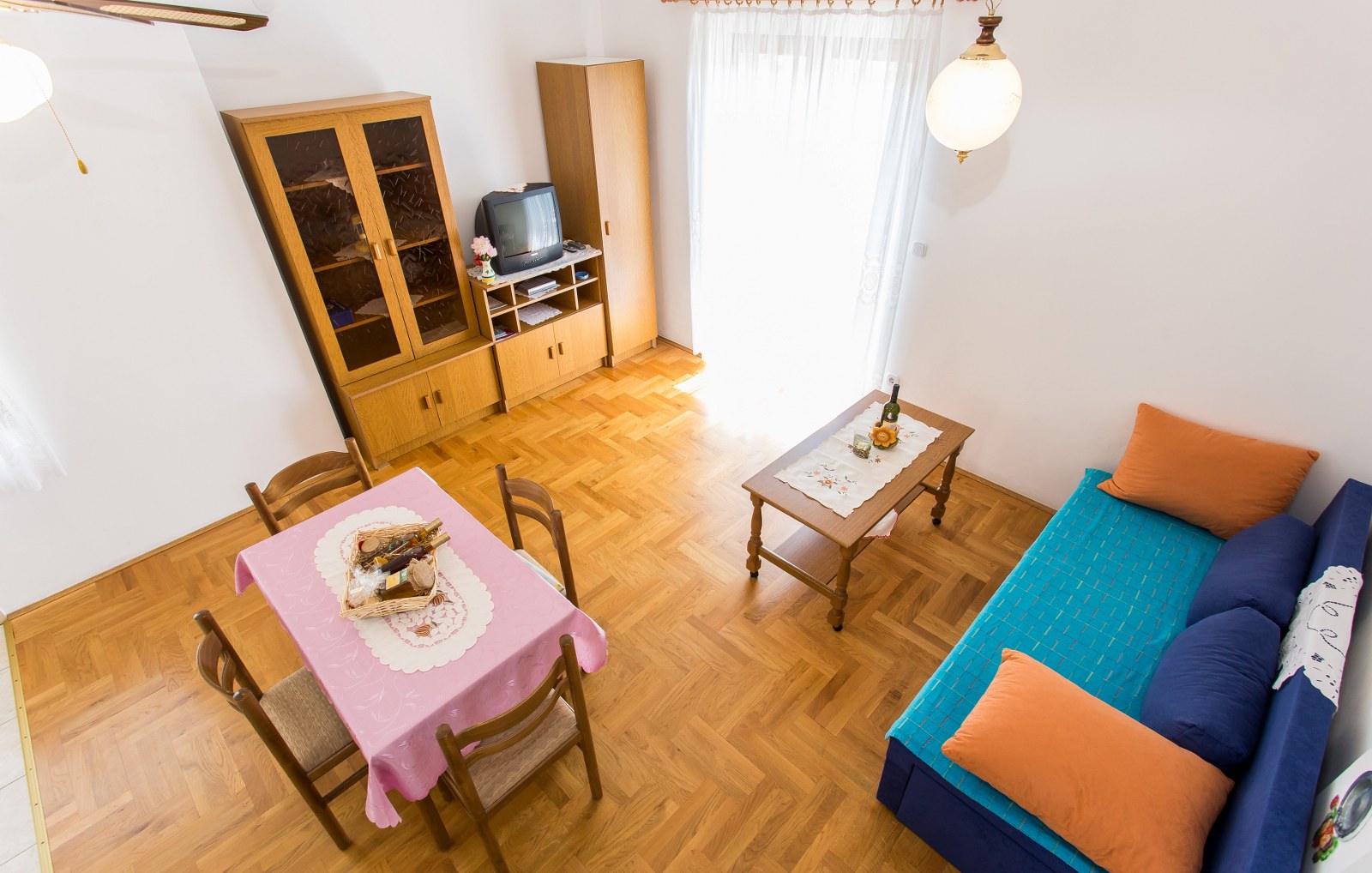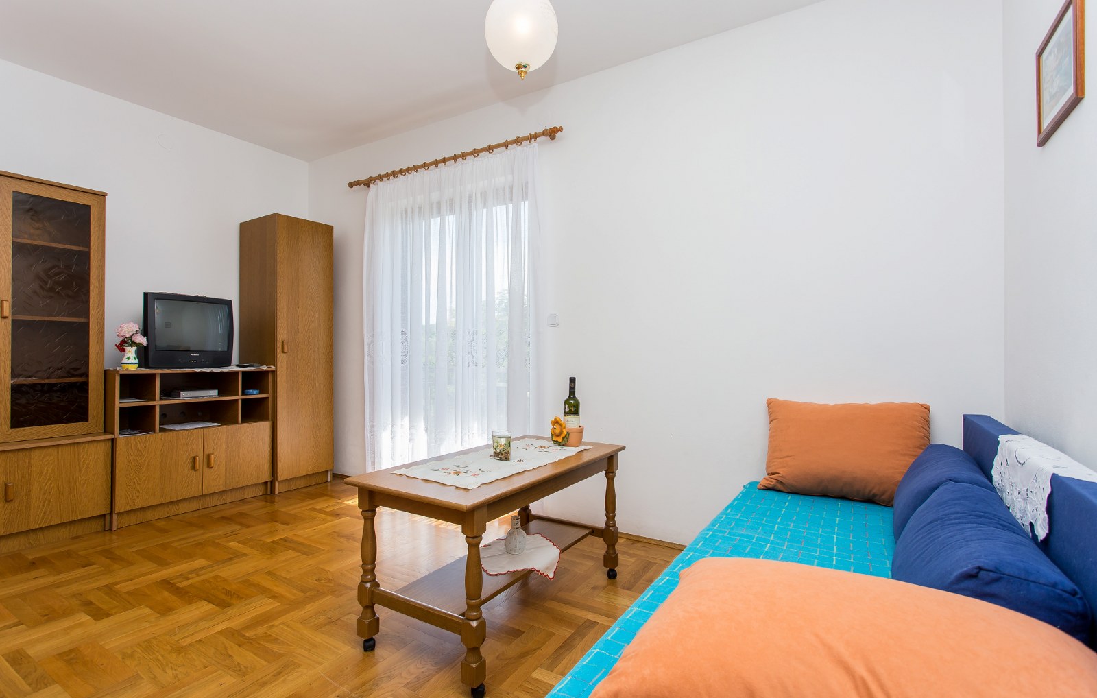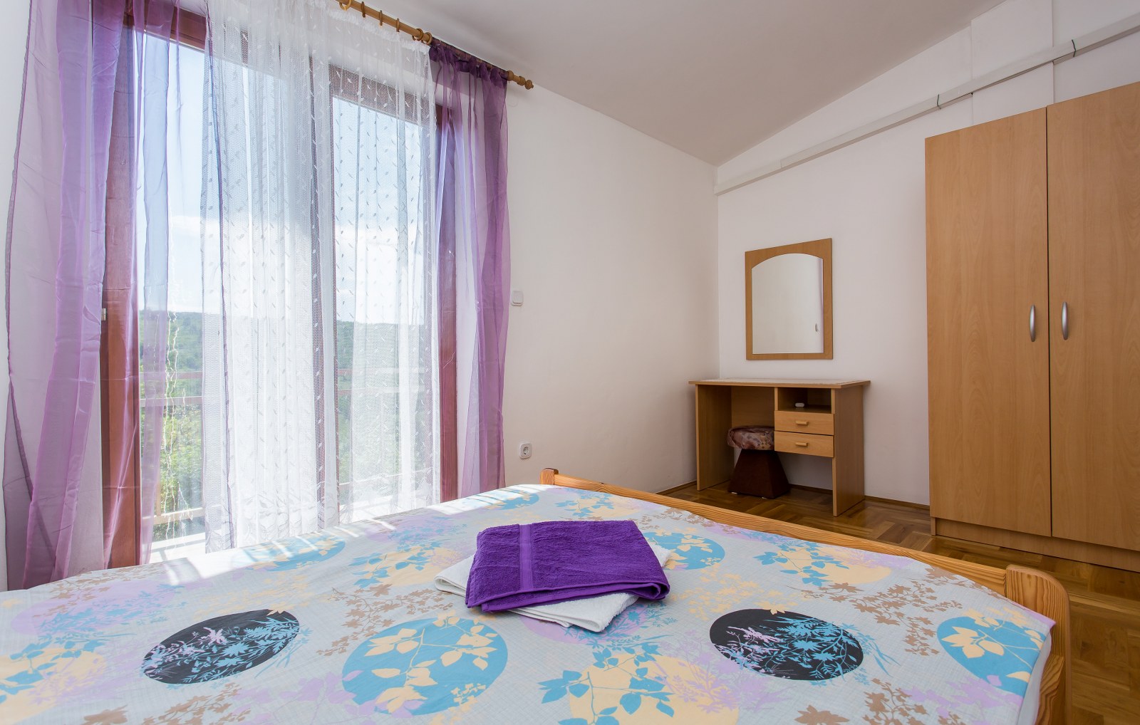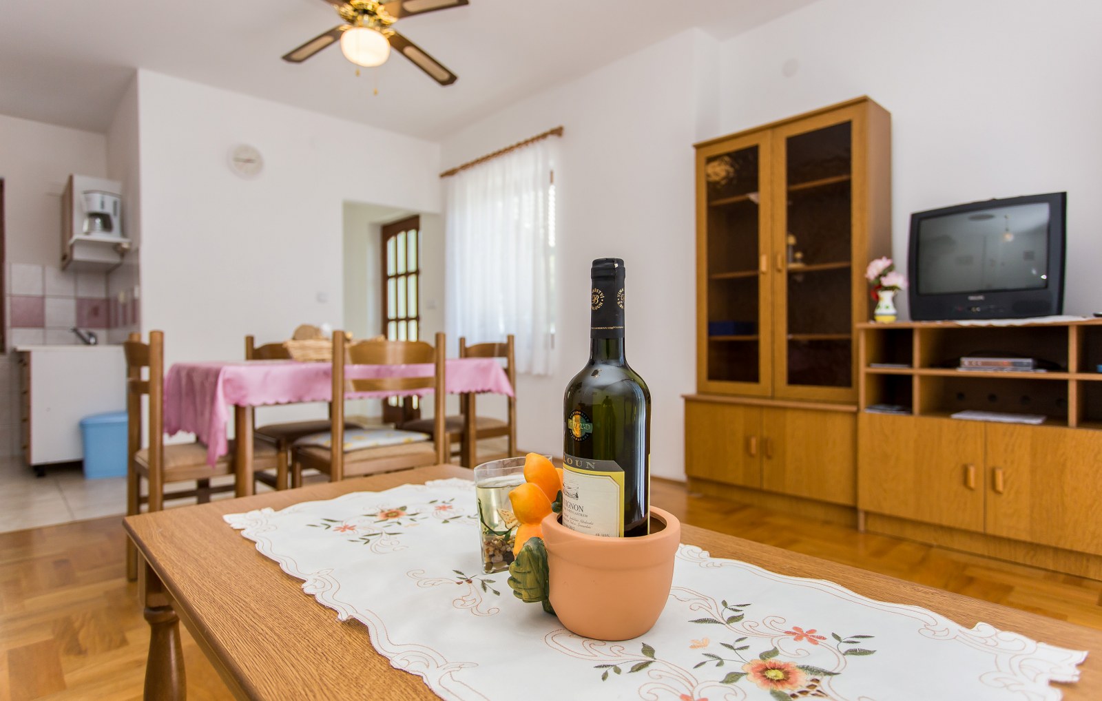 Apartman za odmor pogodan je za 4 do 5 osoba i prostire se na 2 kata. U prizemlju se nalazi dnevni boravak/blagovaonica s kuhinjom i zasebnim WC-om. Na prvom katu nalaze se 2 spavaće sobe i kupaonica. Obje spavaće sobe imaju pristup balkonu s kojeg se pruža prekrasan pogled na zelenilo.