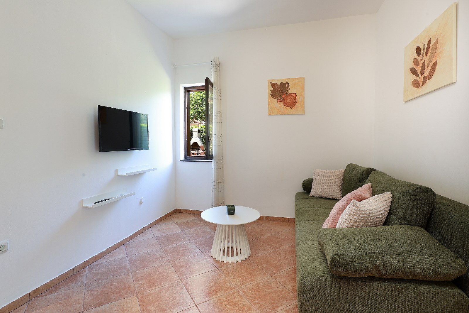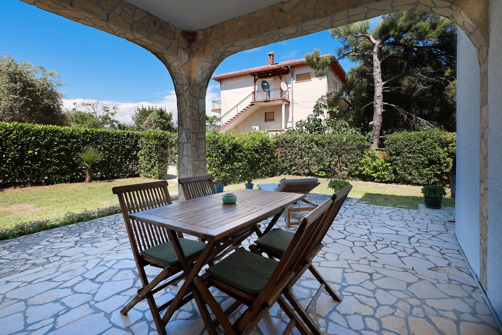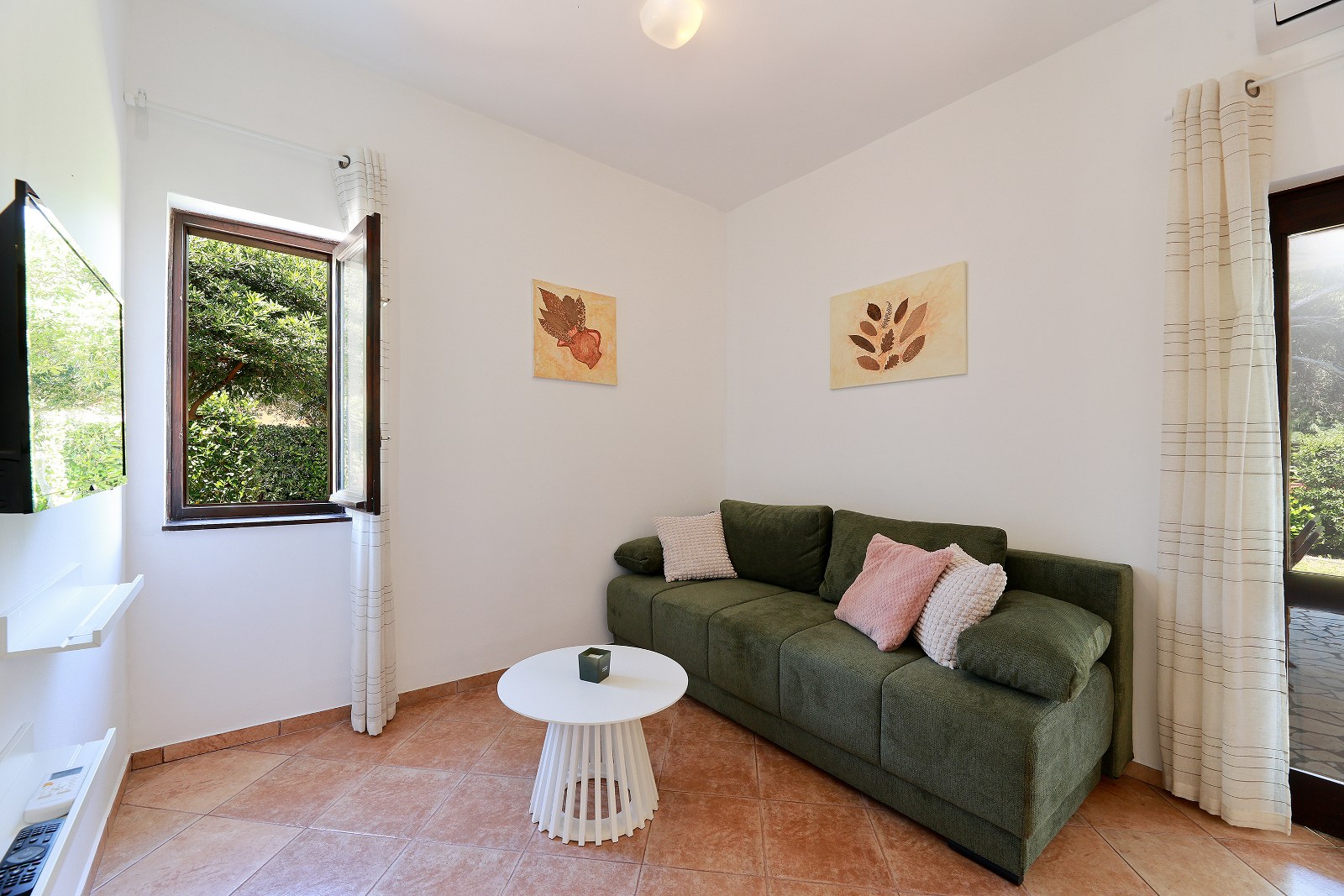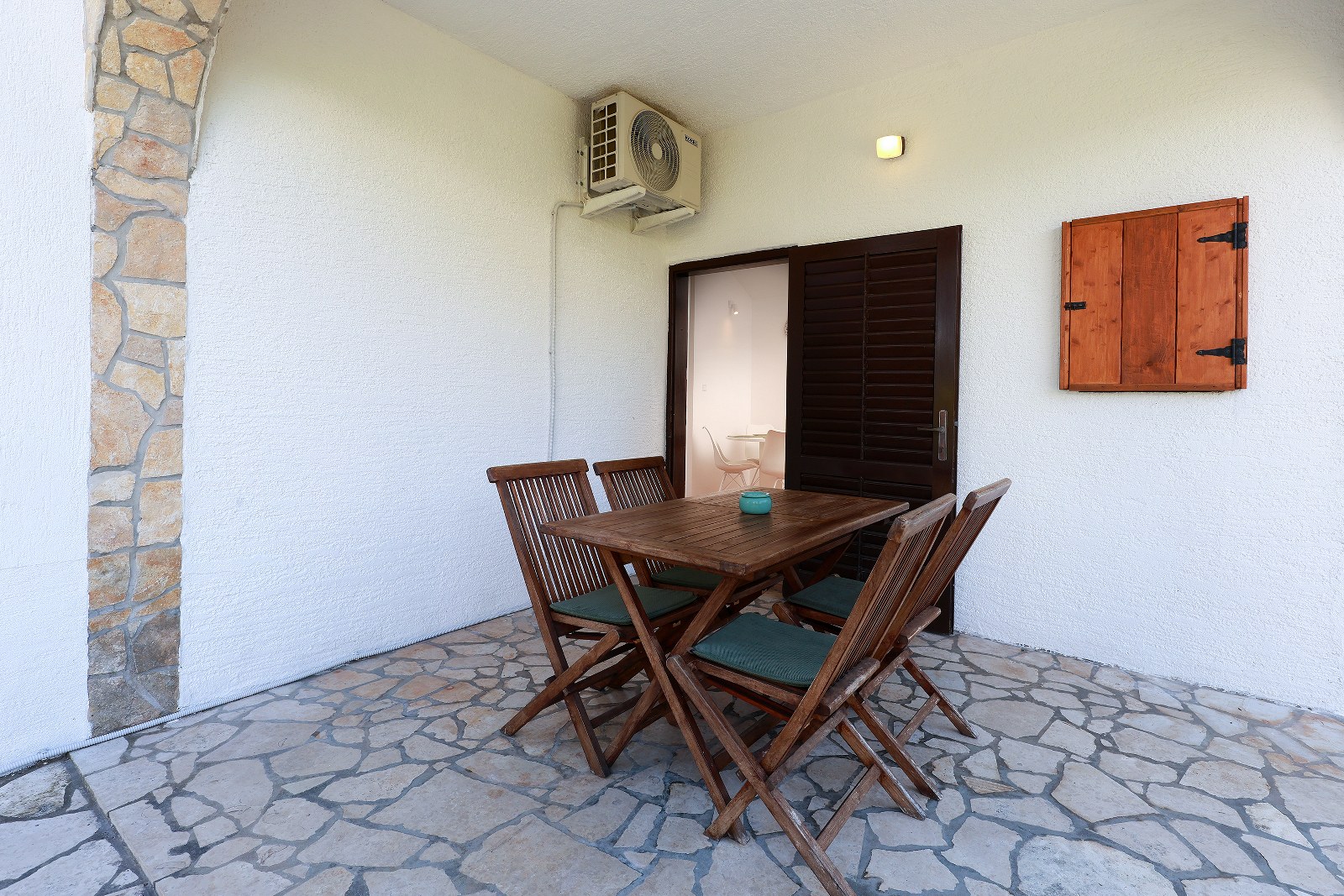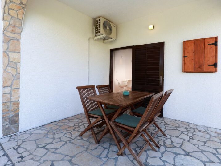 Apartman za odmor također ima vlastitu terasu sa sjedećom garniturom. Dostupni su i klima uređaj, satelitska TV i Wi-Fi internet. Vani možete koristiti zajednički roštilj. Parking je dostupan na posjedu.