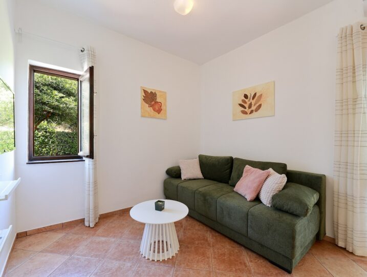 Ovaj šarmantni apartman za odmor nalazi se u turističkom mjestu Šilo na otoku Krku i nudi dnevni boravak s malom kuhinjom, spavaću sobu s bračnim krevetom i kupaonicu s kaučem. U dnevnom boravku nalazi se kauč na razvlačenje za 2 osobe.