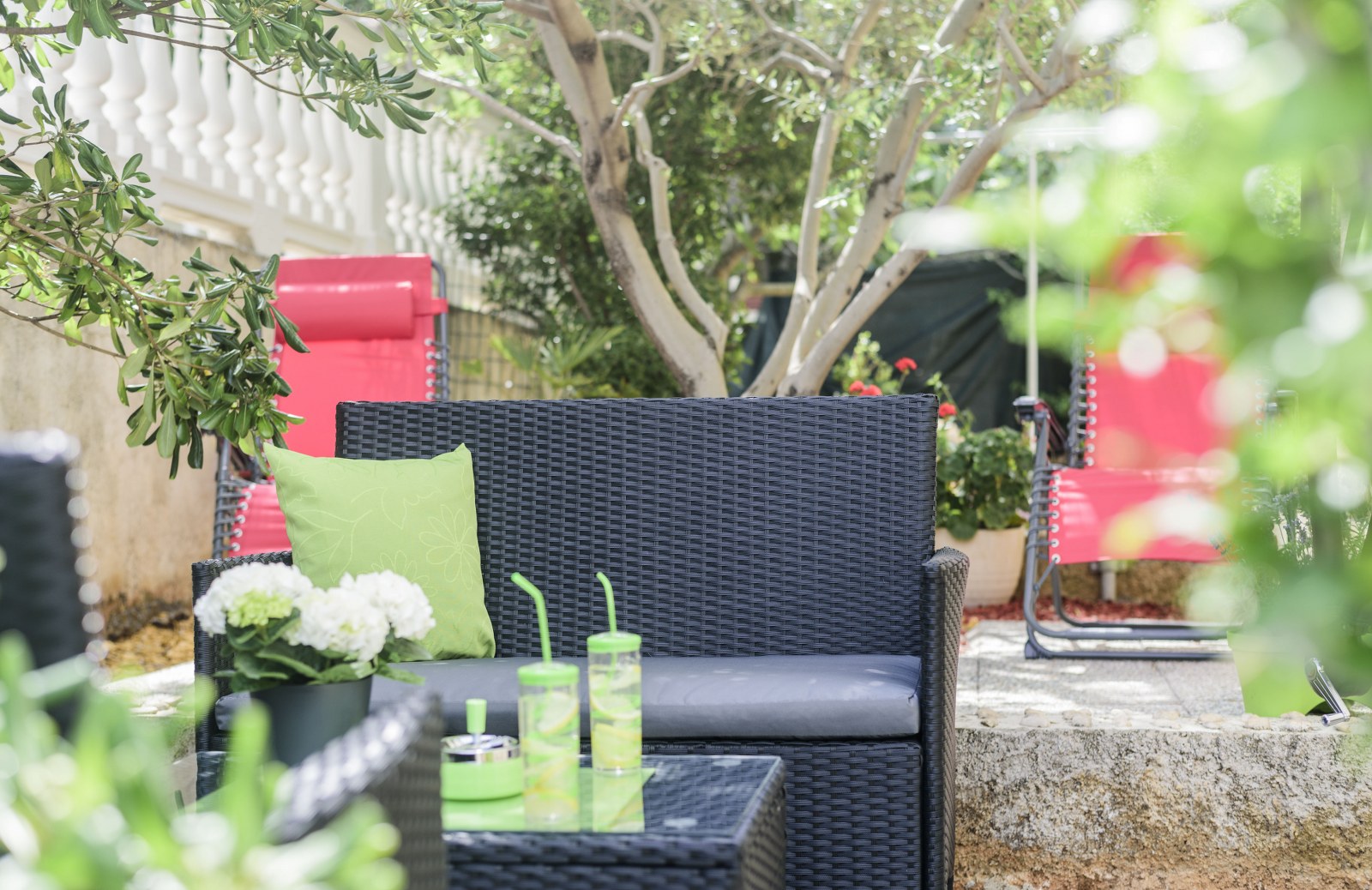 Apartman za odmor također ima vlastitu terasu sa sjedećom garniturom. Dostupni su i klima uređaj, satelitska TV i Wi-Fi internet. Vani možete koristiti zajednički roštilj. Parking je dostupan na posjedu